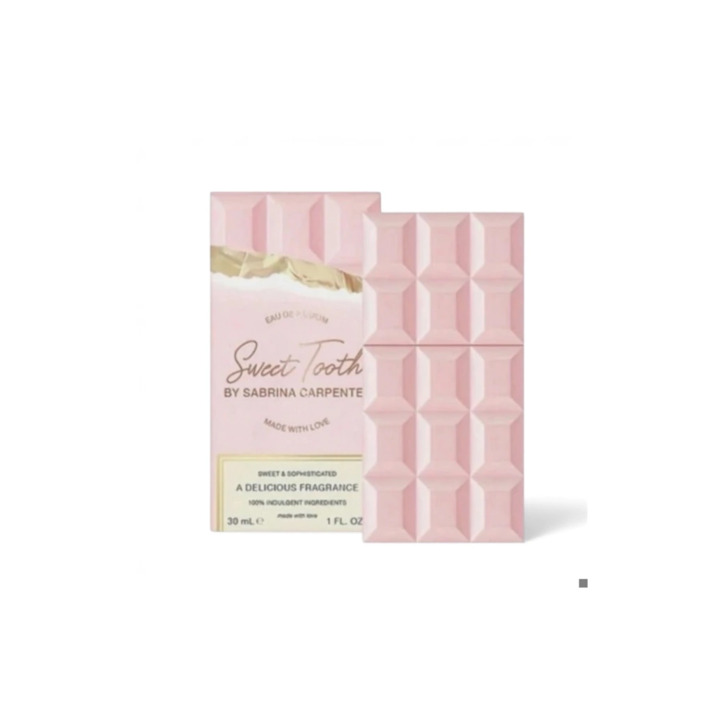 O Sweet Tooth de Sabrina Carpenter é um perfume feminino com notas doces e gourmand. Lançado em 2022, ele combina aromas de marshmallow, chocolate, baunilha e chantilly, resultando em uma fragrância sofisticada e irresistível. A embalagem do perfume, em formato de barra de chocolate, reflete o conceito doce e divertido da fragrância.